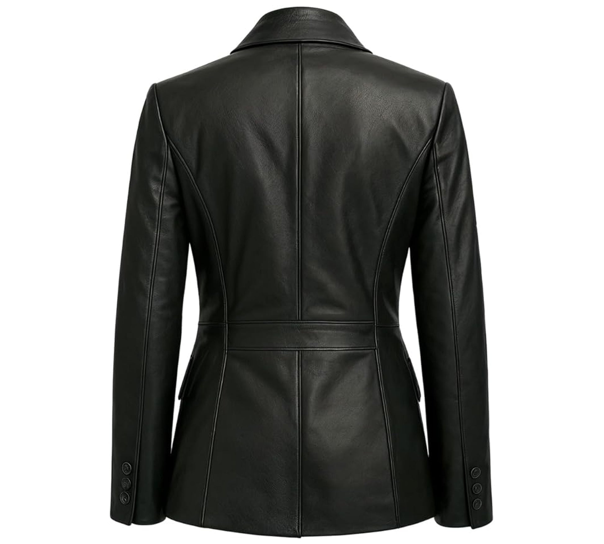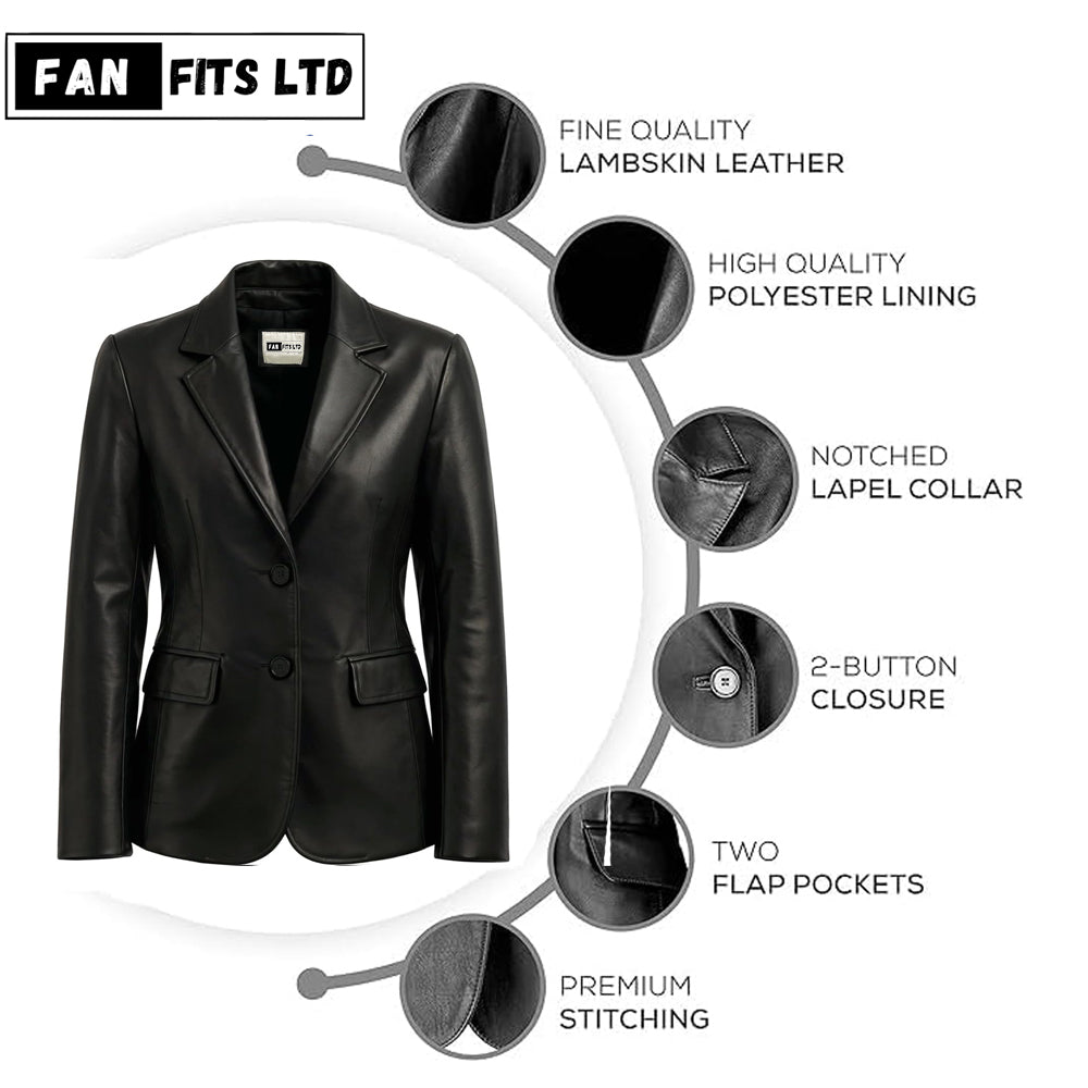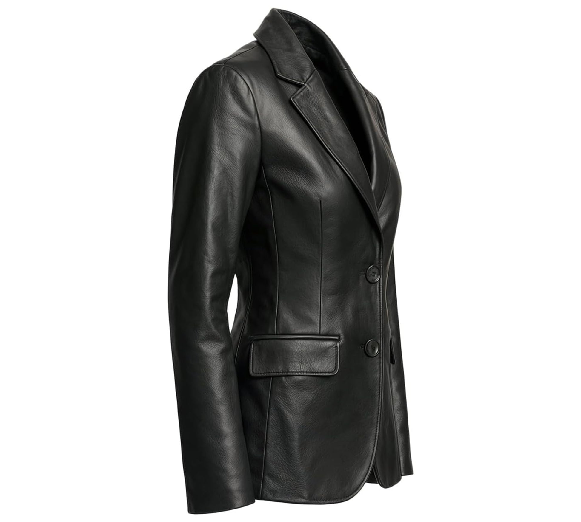 - ✔ Elegant 2-Button Design: The Black leather blazer jacket for women features a sleek front button closure, multiple functional pockets, and a smooth internal viscose lining for added breath ability and refined finish inside and out.
